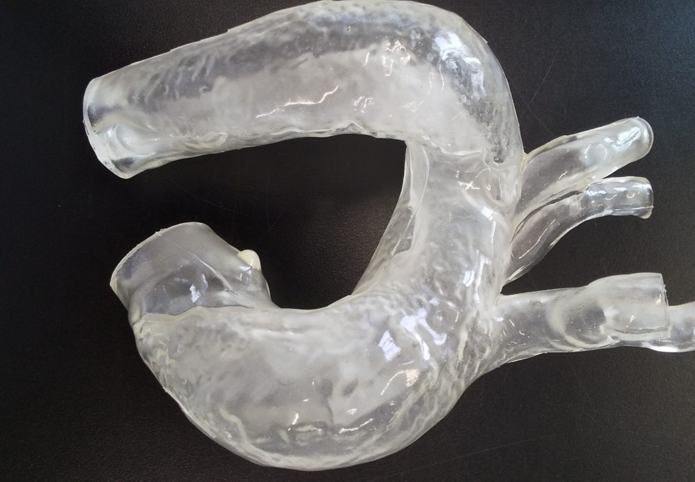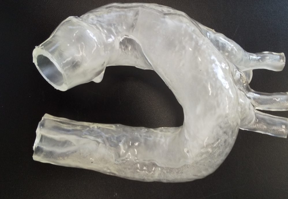 当モデルの完成後、実際に模擬循環回路でステントグラフトを留置して