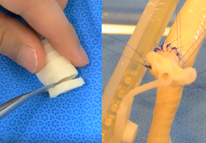 中枢性の肺癌の手術などで必要となる気管・気管支形成再建手術(以降、再建術)は、難度が高く頻度が少ないため、臨床のみで手技に習熟することは徐々に難しくなっている状況と考えられます。一方、再建術の成否が癌の根治度や術後合併症にもつながるため、その手技を習得することは、極めて重要です。そこで、がん研有明病院 呼吸器センターの橋本 浩平先生は、再建術に習熟するためのプログラムに応用することを目的として気管支モデルを開発※1されました。