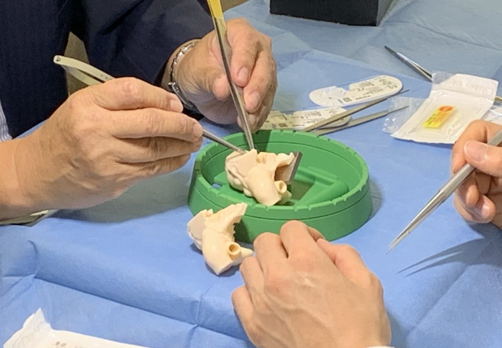 参加者がお二人一組となってSurgery Training Modelを用いて実技をされ、インストラクターが各テーブルで指導をされました。