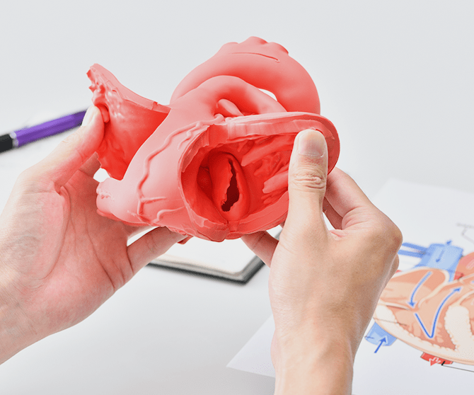 立体的に症例を理解したい軟質樹脂による臓器モデルは、教科書や映像などの従来の教材とは異なり、実際に手に取り立体構造を把握しながら学習することができます。当社の臓器モデルは外観だけではなく内腔までも精密に再現。透明の樹脂を用いて可視化することで、入り組んだ血管や組織の構造など、通常では切開しないと見ることができない部位も明らかにします。また、目的に応じたオーダーメイドのモデルの製作も可能です。当社の臓器モデルを活用することで、今まで以上に内部構造の理解が深まります。