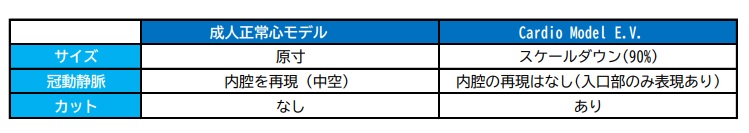 成人正常心モデルとCardio Model E.V.には、どのような違いがありますか?A9.成人正常心モデルとCardio Model E.V.の違いは、以下の通りです。