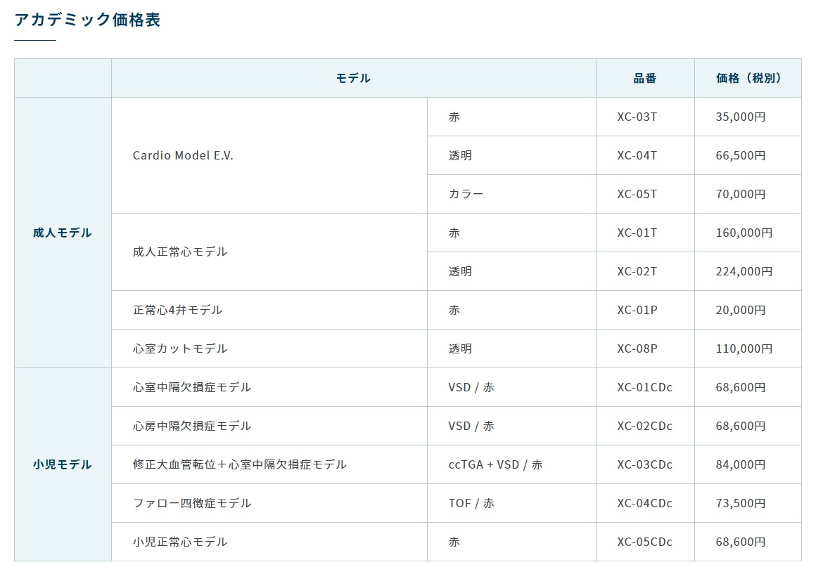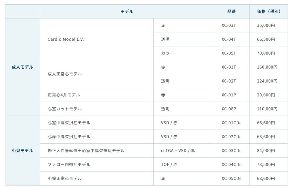 心臓モデル以外では、大動脈弓モデルや冠動脈モデルも、近年よくお買い求めいただいています。