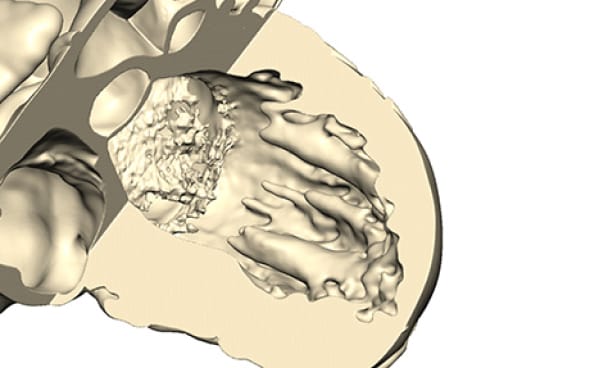 ノイズおよび不要な部位を除去し、表面をなだらかに処理した3Dデータを構築。