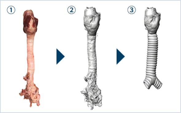 ①ブタの気管支を当社所有の工業用CT装置で撮影
