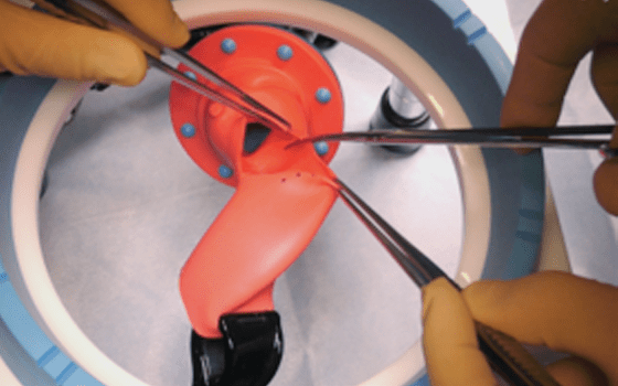 トレーニングが可能大動脈は、実際のCTデータをもとに実寸で再現。人工弁模型を落とし込み、縫合糸を用いてインプラントトレーニングを実践的に行うことが可能です。