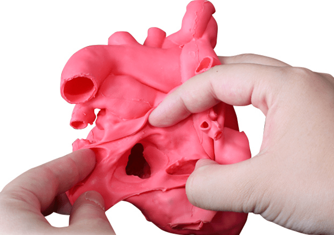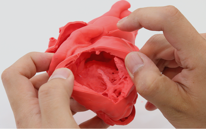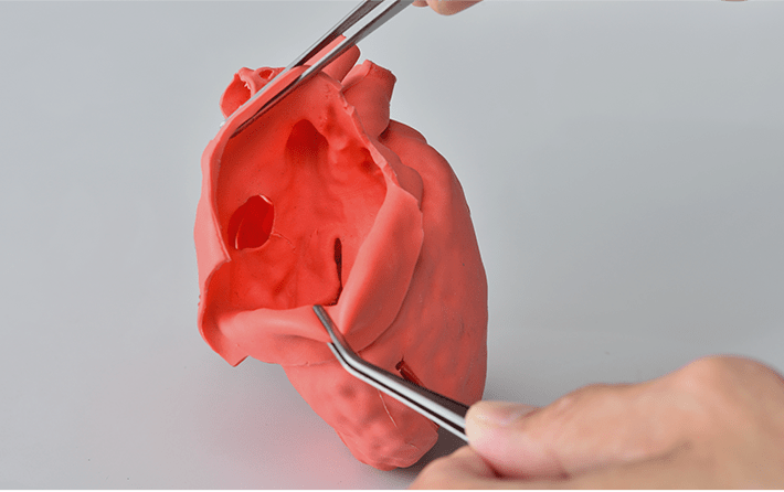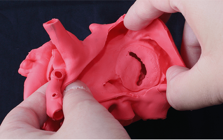 疾患の形態をより精密に再現実際の患者様のCTデータをもとに、先天性小児疾患の代表的なVSD、ASD、ccTGA + VSD、TOFを再現しています。先天性心疾患の構造を立体的に学ぶためのツールが少ない背景のもと、国立循環器病研究センターに監修いただき、当モデルを開発しました。