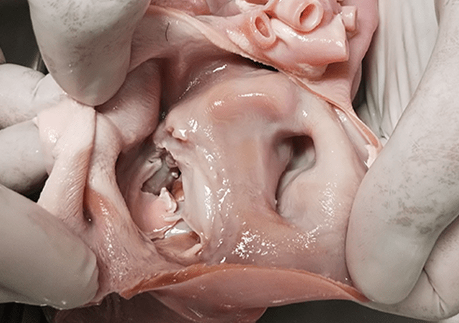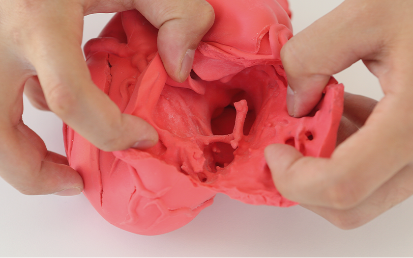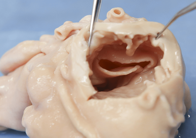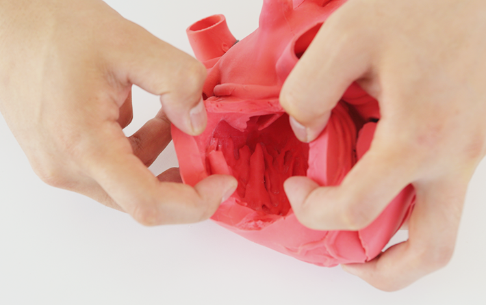 カットを入れて使用可能国立循環器病研究センターの監修のもと開発された成人正常心モデルは、外観だけではなく内部構造までより精密に再現した軟らかい樹脂製のモデルです。同じく成人の正常心臓を模したCardio Model E.V.はあらかじめ6か所のカットがあるのに対して、当製品にはカットが入っていないため、任意の箇所にカットを入れてお使いいただくことも可能です。