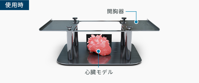 拍動装置と開胸器、専用の心臓モデルで構成されており、
