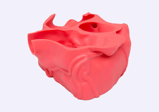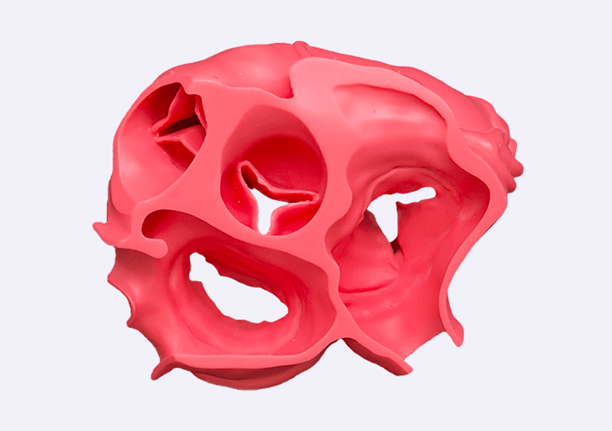 4弁と周辺部のみを表現当モデルは、標準的な成人男性の心臓モデルをもとに、大動脈弁、僧帽弁、三尖弁、肺動脈弁すべてを同時に観察できる箇所で取り出しています。弁の周辺部以外はないため、⼼内構造を理解する上で重要な4弁すべてを心房側と心室側から観察しやすいことに加え、各弁の距離感や位置関係などを容易に把握していただけます。