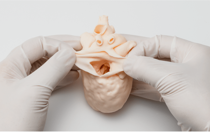 内部構造の表現高速光造形技術とハイブリッド真空注型技術(特許取得)を駆使することで、心臓や血管などの空洞構造が存在する臓器の製作が可能。内部構造を生み出す特殊な技術は、より精度の高いモデルを製作する当社の強みのひとつです。