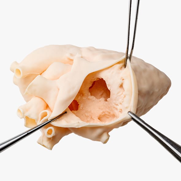 心臓の構造診断および手術シミュレーションを目的とした、実物大の3D心臓モデルです。
