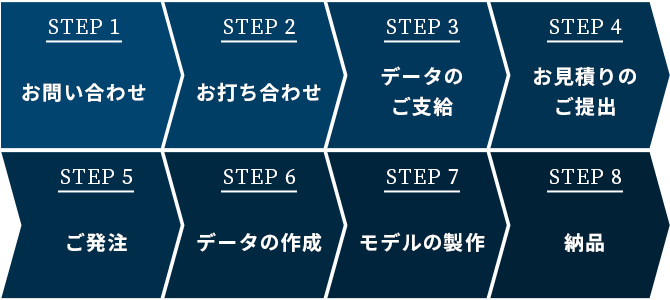 メールもしくはお電話にて、製作するモデルの詳細をお聞かせいただきます。